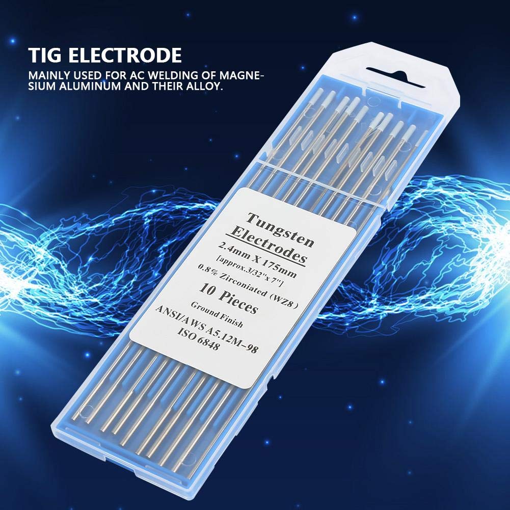 Wolfram-Elektroden WZ8 Mit Zirkonia, 10 Stück 2,4x175 Mm – Für TIG AC-Schweißen Von Aluminium & Magnesium